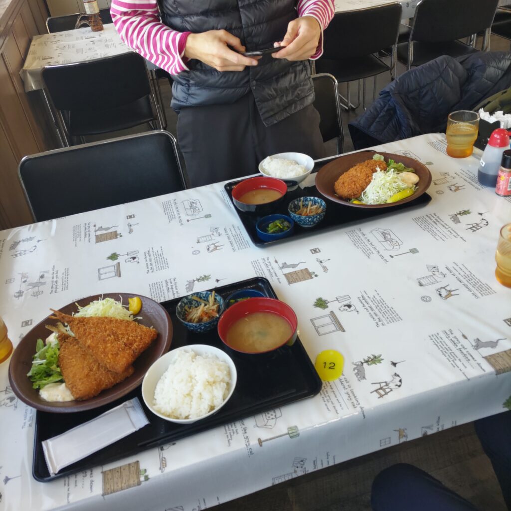 私はアジフライ定食、旦那はメンチカツ定食、息子はとんかつ定食、全員揚げ物にした。