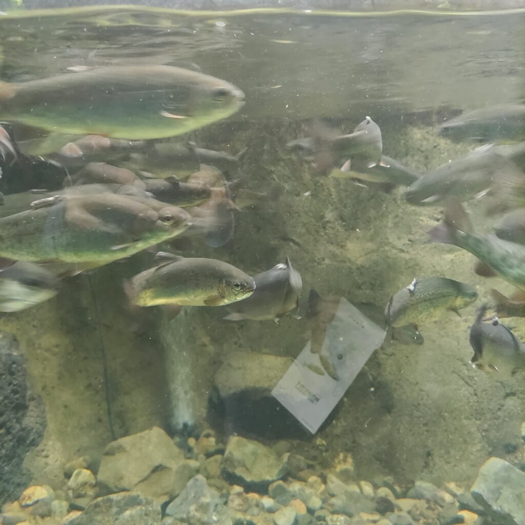 チョウザメ池が外にあって息子がずっとへばりついて見ていた。