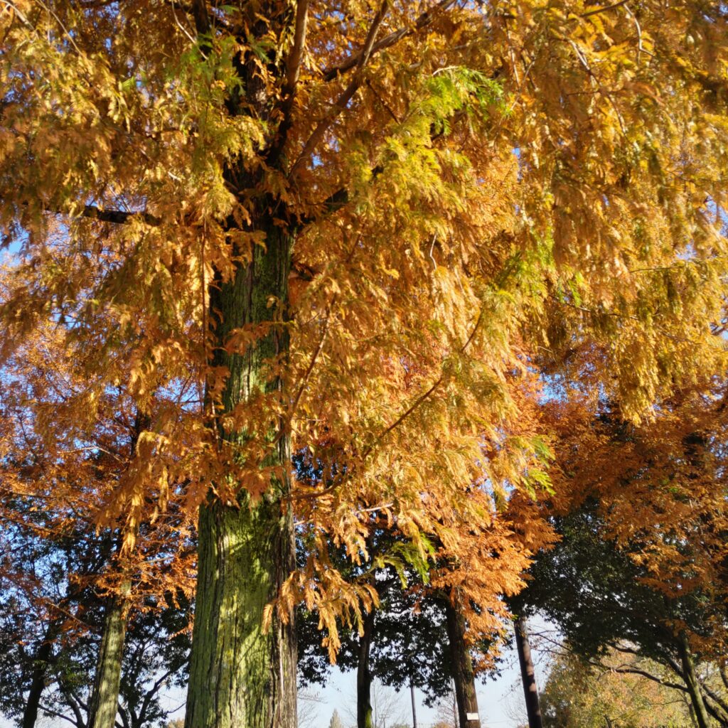 外に出ると天気が良く紅葉していた。